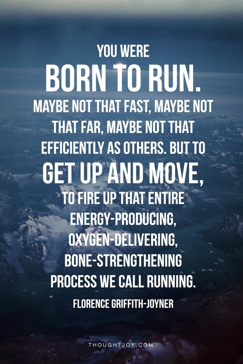 Ok, I’m still beaming from my successful 20-miler this weekend, a distance PR, and when I saw this graphic on Pinterest, it basically summed up my thoughts perfectly. We were all born to run and be our own runners. Just because we may not be as fast as someone else, or be able to go as far as another runner, we are all runners. Relish in your successes and learn from your hardships. It’s all part of the process and it’s the reason I love running. Happy running this week!