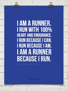 1. I love this quote and I agree with you. It would be great to have this quote in a pretty picture frame or so, just to remind myself that no matter what, if I want to be a runner, I am.